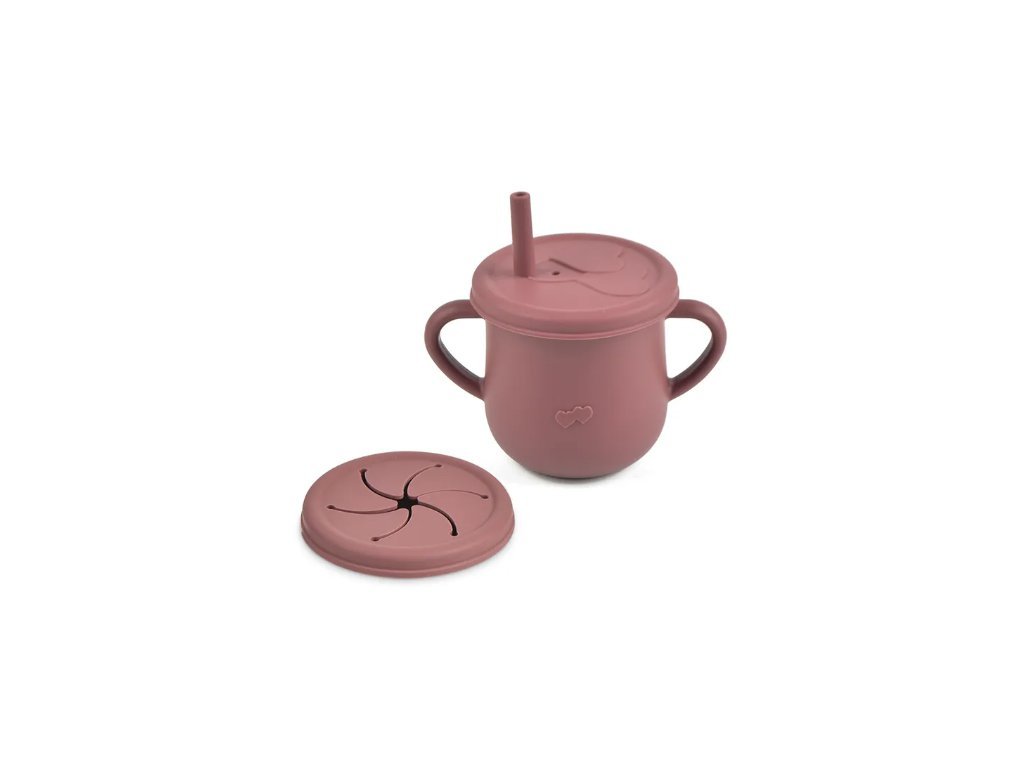 Praktický silikonový hrnek 2v1 má dvě využití - k pití přes brčko a na mlsání, kdy si děťátko vytáhne dobrotu z hrníčku přes silikonový otvor, který zároveň chrání obsah před vysypáním.