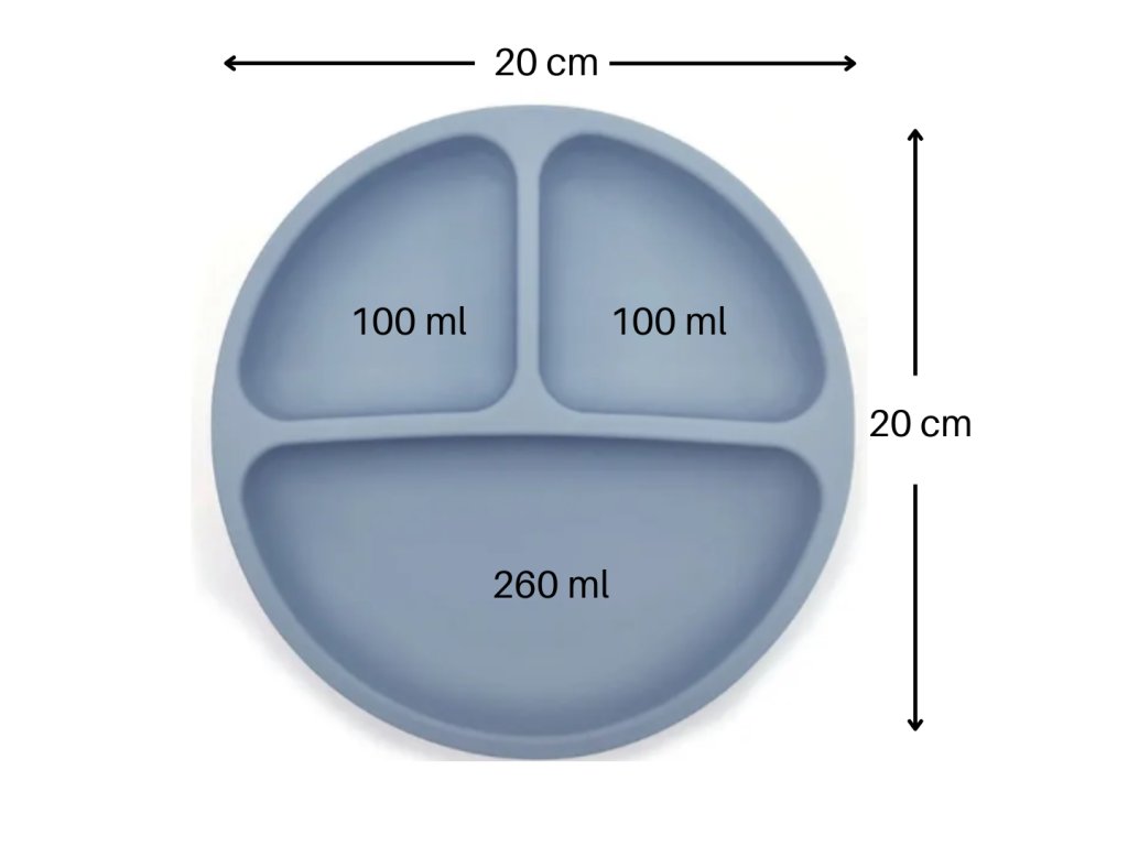 Silikonový talíř je jednoduchý na čištění a díky přísavkám ze spodní strany zůstane stabilní na každém povrchu. Předělen na 3 části (2 menší a 1 větší). V kombinaci s naším dětským silikonovým příborem je ideální pro všechny děti, které se učí papat samostatně.